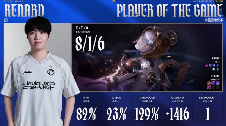 【14:30】JiaQi艾希中路一箭去下击中眼上回城的哥哥烬,Renard发条跟上一套击杀JKL拿到人头。