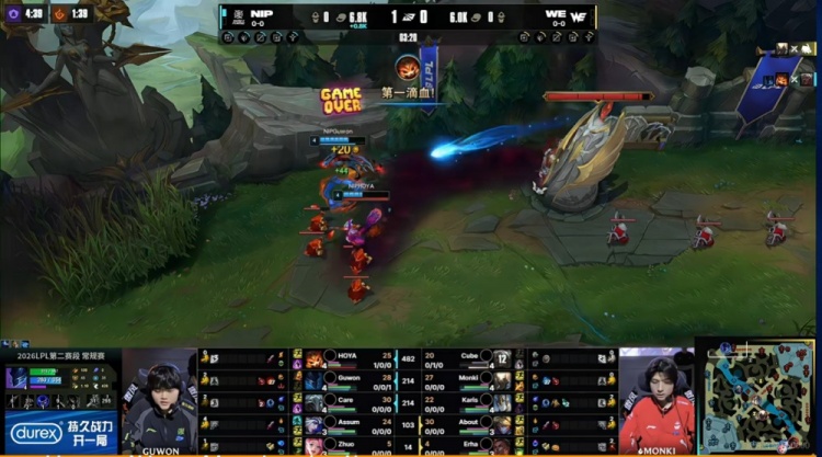 直播吧4月4日讯 2026年LPL第二赛段今天开打,今日的最后一场比赛是NIP对阵WE!