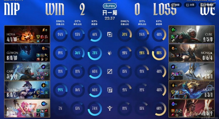 NIP:上单HOYA,打野Guwon,中路Care,下路Assum,辅助Zhuo
