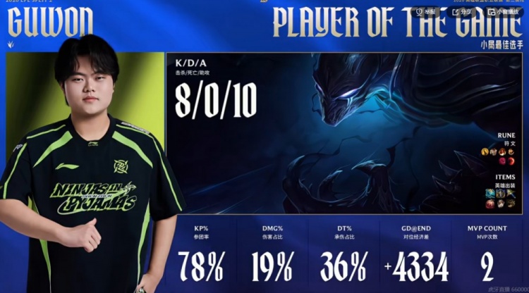 第一局:🎮Guwon蔚天霸横空强锁About厄斐琉斯 中期打出压制NIP先赢首局