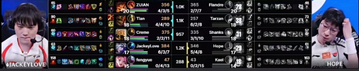 直播吧4月5日讯 LPL第二赛段TES击败AL拿下首局,本局JKL斩获6-3-7的战绩!