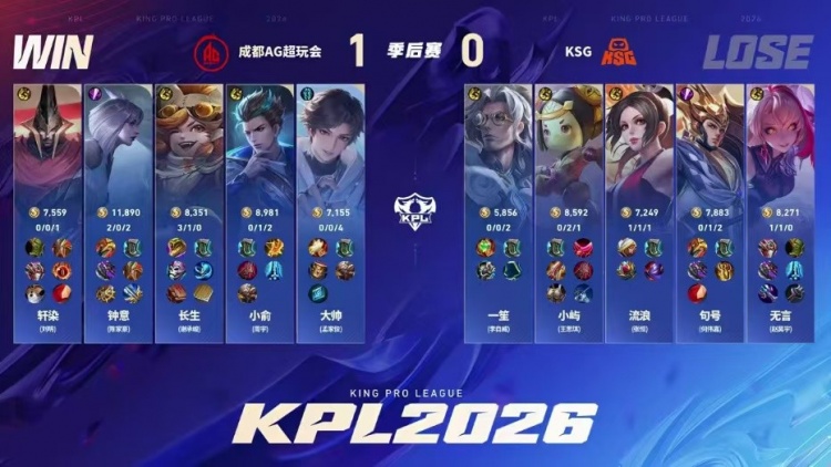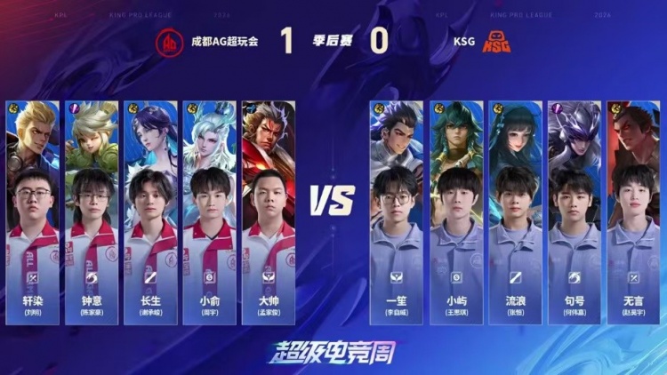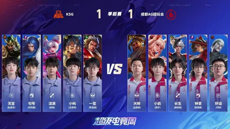直播吧4月5日讯 2026KPL春季赛本场比赛是由成都AG超玩会对阵到KSG!