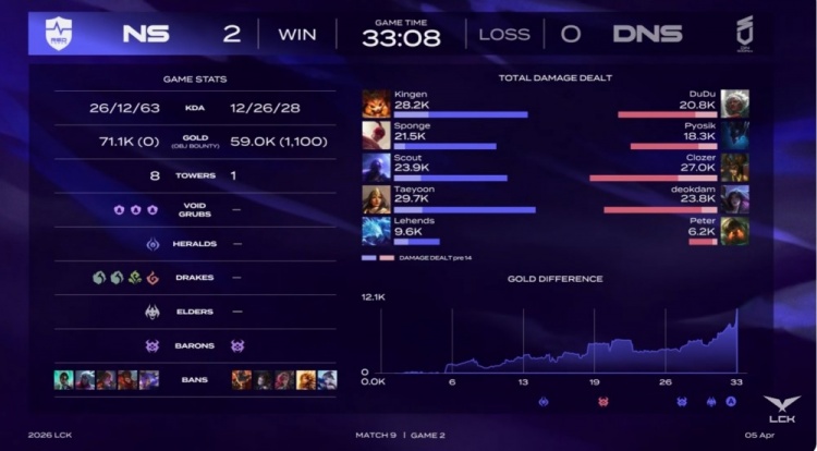 直播吧4月5日讯 2026年LCK来到本周最后一个比赛日,今天的首场比赛是NS对阵DNS!