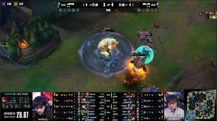 第一局:🎮硬实力碾压!knight发条毁灭冲击 JDG正面不堪一击 BLG赢首局