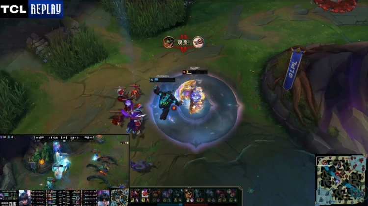 【5:09】Junjia冥犬再来下路,ON璐璐卖掉自己力保Viper霞逃生,Xun随后再来下路拆掉三角草JDG的真眼。