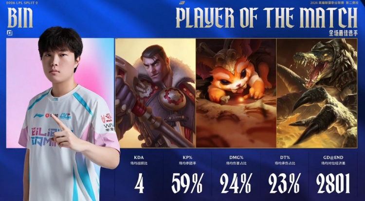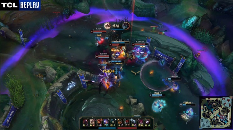 后续JDG搏命吃掉大龙,BLG听牌风龙魂后,龙魂团Bin鳄鱼绕后融化GALA芸阿娜,knight维克托双杀,BLG打出2换5经济领先8k。