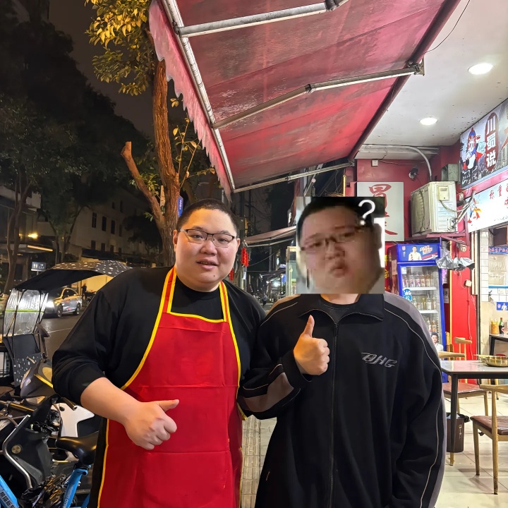 围裙一带可太像厨子了🤣网友街头偶遇PDD和五五开