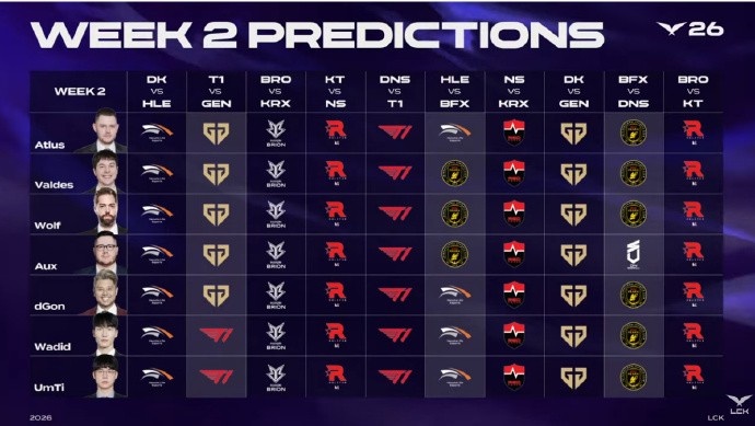 直播吧4月8日讯 LCK第二赛段本周进行第二周的赛事,LCK官方发布了众多解说对赛事的预测,如下:
