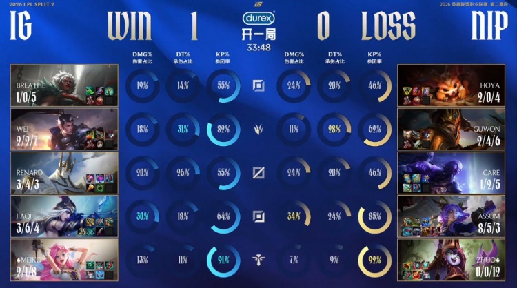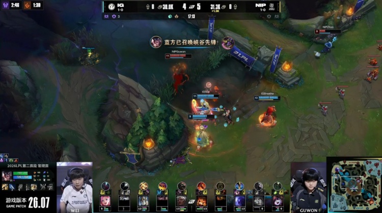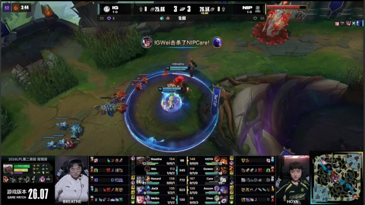 直播吧4月8日讯 2026LPL第二赛段常规赛组内赛继续进行,今日首场比赛由iG对阵NIP!