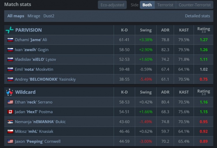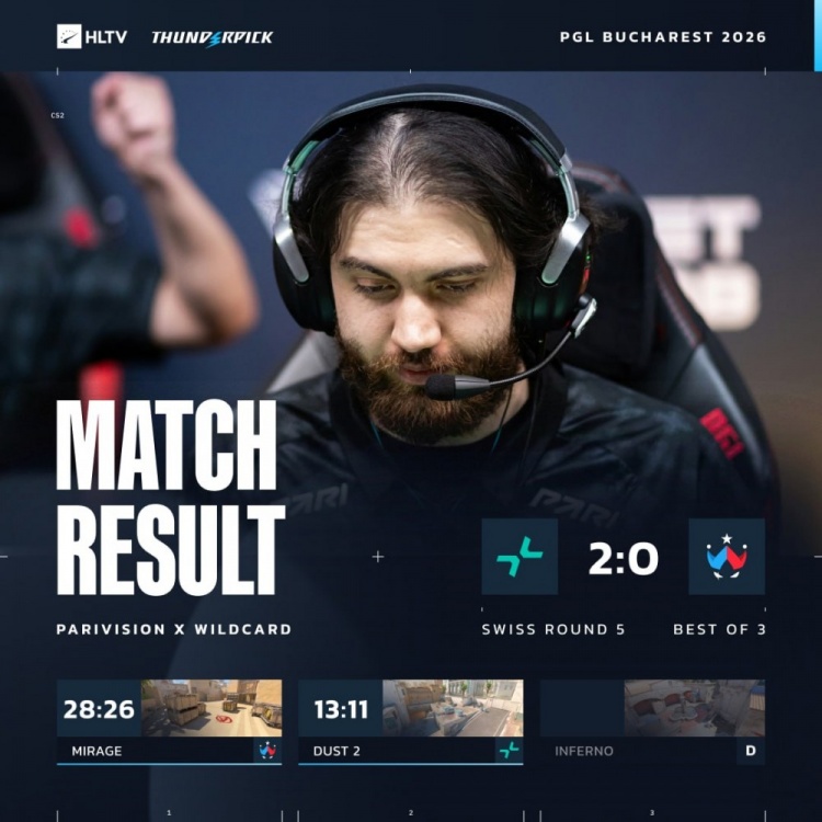 直播吧4月8日讯 CS2大赛PGL布加勒斯特瑞士轮2-2组生死战,PARIVISION两图横扫淘汰Wildcard,瑞士轮3-2晋级淘汰赛!