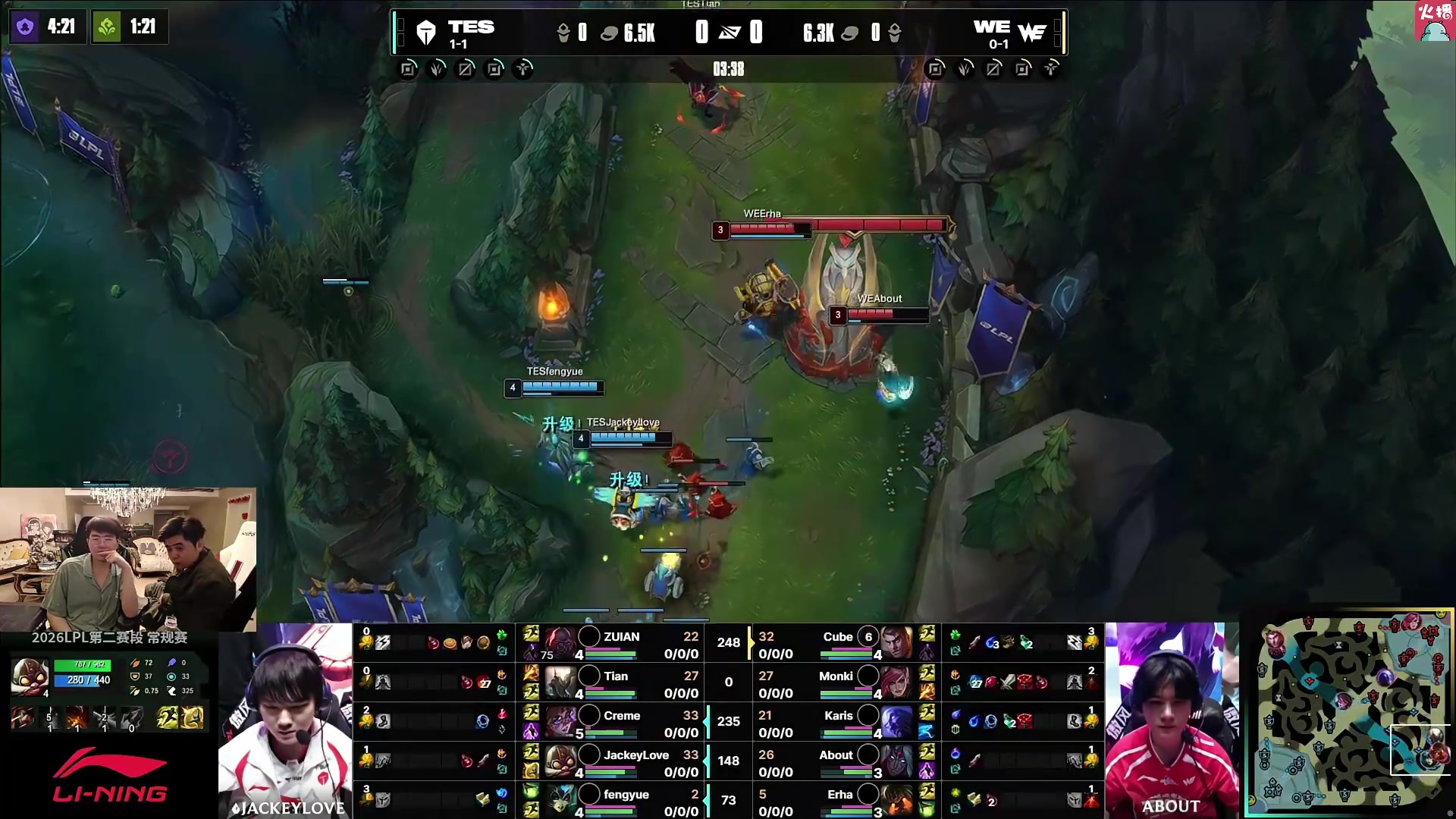 姿态看JKL飞机8-2超神,TES鏖战40分钟战胜WE:这把比赛能打40分钟真有点变态!