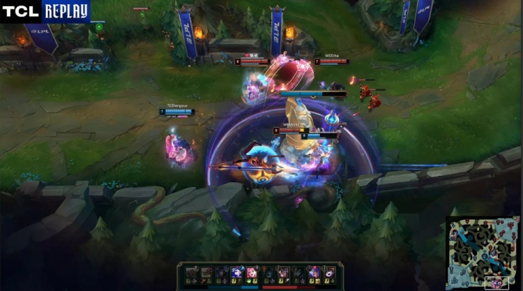 【19:39】TES中路推进,fengyue萨勒芬妮与Creme妖狐双魅惑击中WE双人组,后者瞬间被融化,TES打出0换2,经济领先3k。