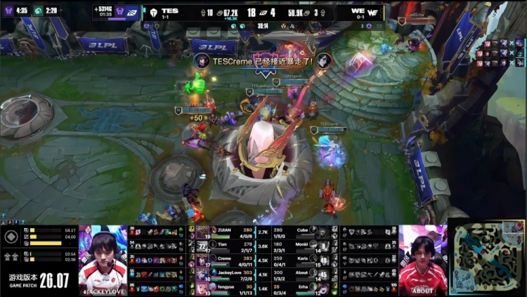 第一局:🎮差点翻车!哥哥&Creme连续掉点险送好局 WE难逆转 TES赢首局
