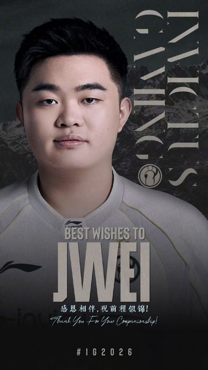 感谢@qaqJwei 为iG电子竞技俱乐部做出的贡献,天高任鸟飞,海阔凭鱼跃。相信无论身在何方,你都能如星辰闪耀,于属于自己的天际,绽放万千光芒。