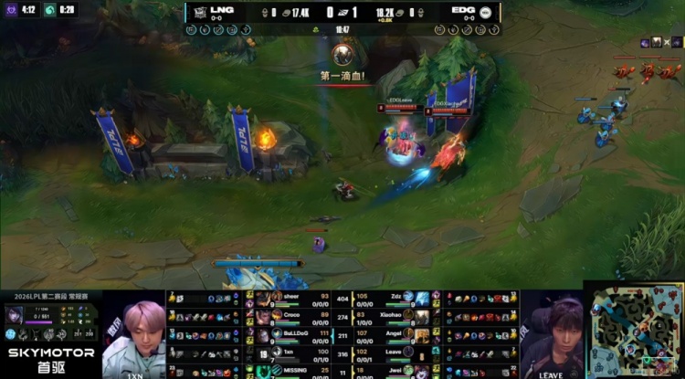 直播吧4月10日讯 LPL第二赛段今天继续进行,首场比赛是涅槃组的EDG对阵LNG!