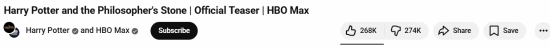 直播吧4月10日讯 据外媒报道,在HBO发布《哈利波特》首支预告后,初期评价偏正面,但不到两周口碑明显反转。该视频(2026年3月25日发布)目前播放量超1000万,约26.8万点赞,但点踩已超过27.4万,负面评价占优。