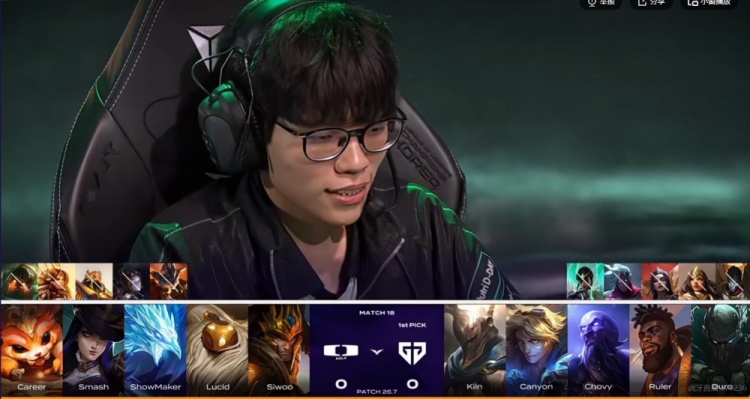 GEN:上单Kiin,打野Canyon,中路Chovy,下路Ruler,辅助Duro