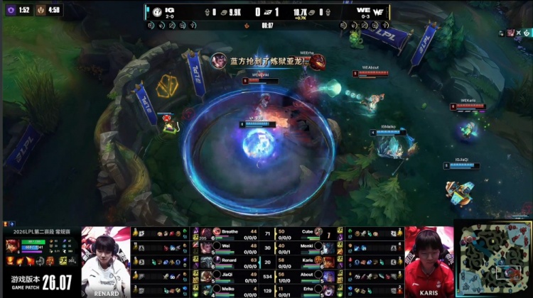 【6:01】小龙团,Wei赵信捅进龙坑抢掉小龙,Meiko娜美被Karis安妮提伯斯拍住融化,WE经济领先1k。