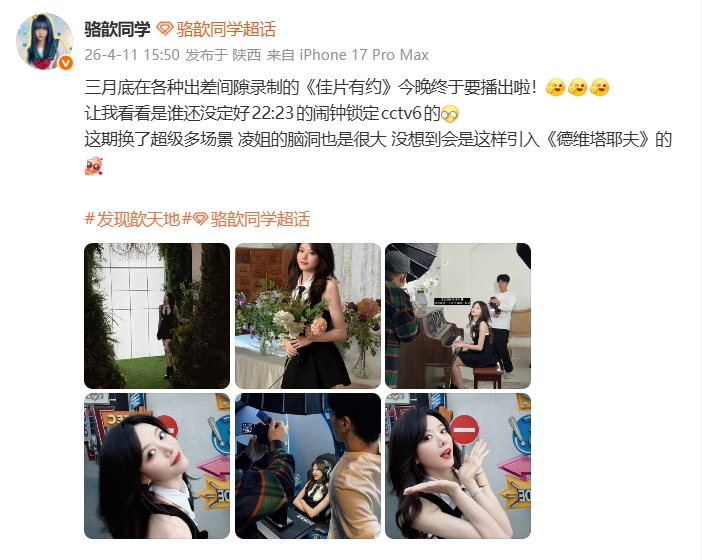 骆歆这档节目在《佳片有约》2026-015期,有想看的吧友可以去CCTV6官网收看该节目。