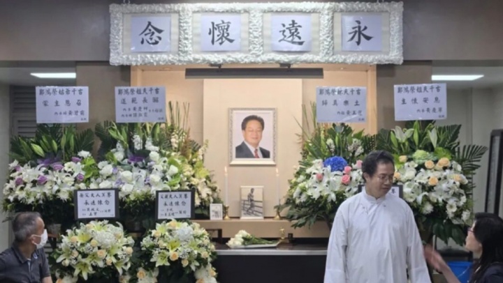 他的一双子女均携伴侣送上花牌,花牌上分别题写“父亲大人冥鉴,永远怀念”“岳父大人冥鉴,永远怀念”。郑雷家人婉拒媒体采访,表示只想安静送他最后一程。