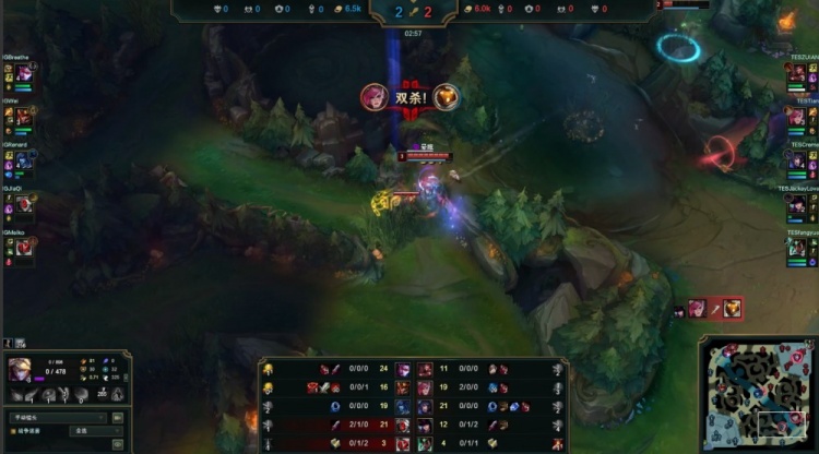【2:01】Wei皇子三级抓下,TES开场没在iG的F6放眼不知道Wei的动向,Wei见面挑飞哥哥,JKL女警交闪难逃一死被杀,随后JiaQi伊泽瑞尔E到夹子上被杀,小天蔚来下支援瞬间双杀,双方打出2换2。