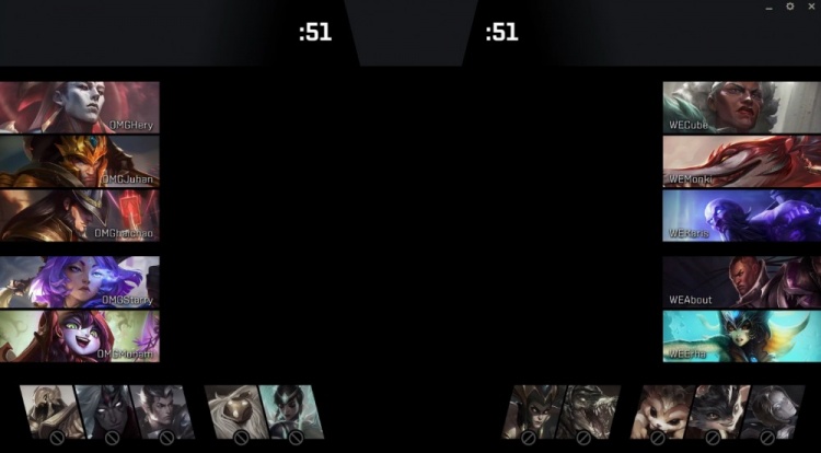 Ban:沙皇、韦鲁斯、赵信、巴德、卡尔玛