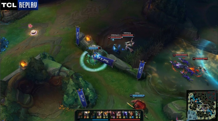 【18:47】野区团战,JiaQi走位激进不点门被xiaohu瑞兹隔墙控住拿到终结人头,Wei潘森在自家红buff被堵送再送xiaohu终结,WBG打出1换2,双方经济持平。