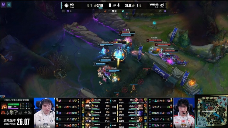 直播吧4月15日讯 2026LPL第二赛段常规赛组内赛继续进行,今日焦点之战由iG对阵WBG!