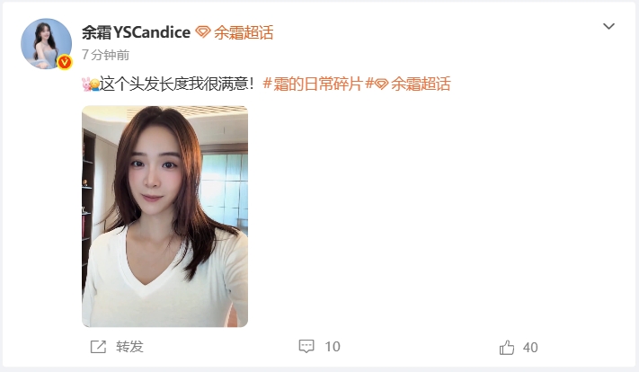 人妻韵味拉满😍余霜分享自拍照:“这个头发长度我很满意~”