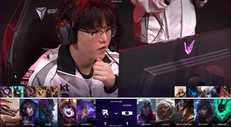 第三局比赛前期DK节奏拉满,PerfecT纳亚菲利还被gank让Siwoo维鲁斯爽爽发育!DK前期顺风顺水拿下大龙之后领先6K经济,一度看到了打破KT不败金身的希望!但是随后Siwoo维鲁斯连续白给两波,Lucid安蓓萨也开始犯病自己没死但是连续害死了SMK卡牌!KT借助PerfecT纳亚菲利冲阵连续强杀Smash厄斐琉斯,通过一波波团战打回劣势拿下土龙魂!最终团战DK多个大招全空,KT逐个击破打出0换4之后中路一波结束比赛!拿下五连胜,仍然是本赛段LCK唯一不败的队伍!