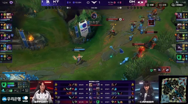 【16:12】KT拿下二小龙,DK抱团在中路击杀掉了Effort璐璐,回头拿下峡谷先锋!