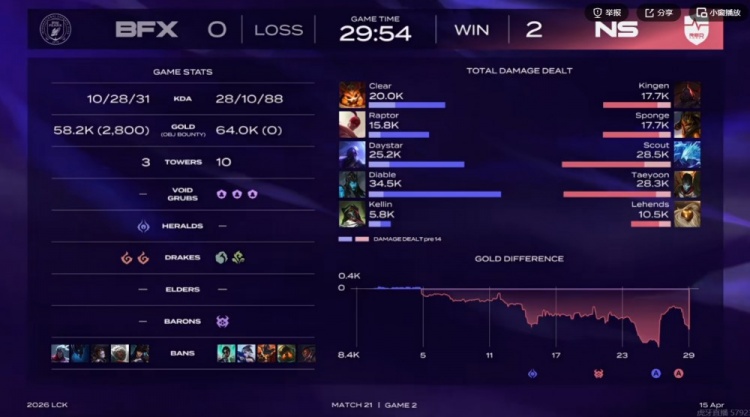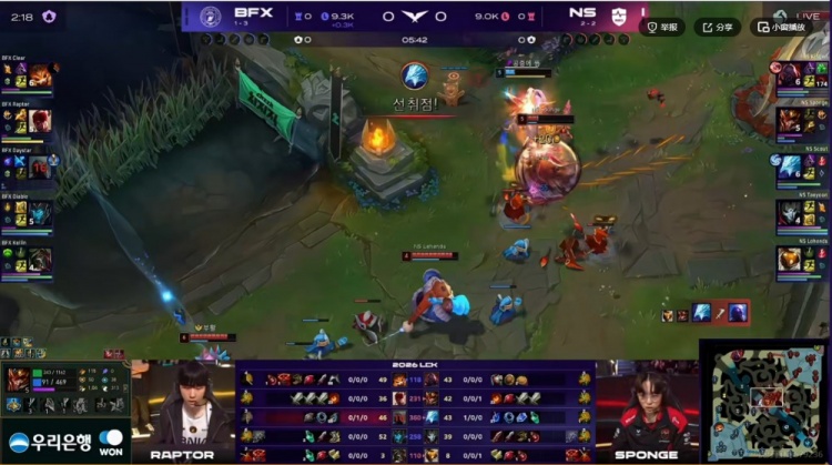 直播吧4月15日讯 LCK来到新的一周,今天的首场比赛是NS对阵BFX!