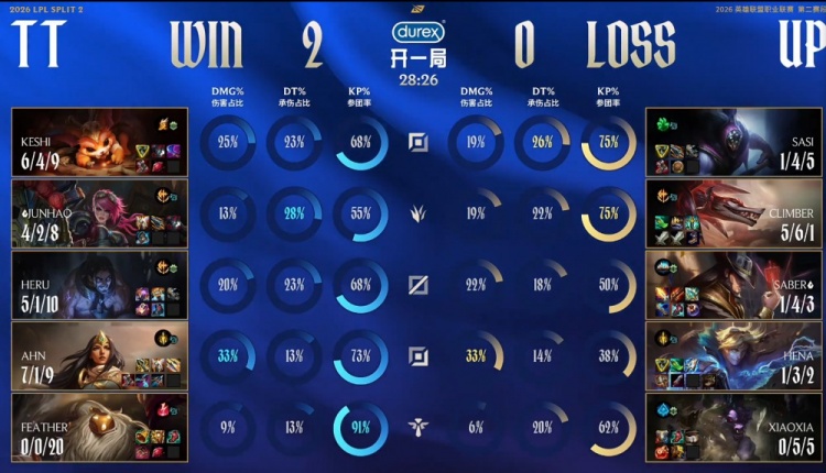 直播吧4月15日讯 2026LPL第二赛段常规赛组内赛继续进行,今日涅槃组比赛由TT对阵UP!
