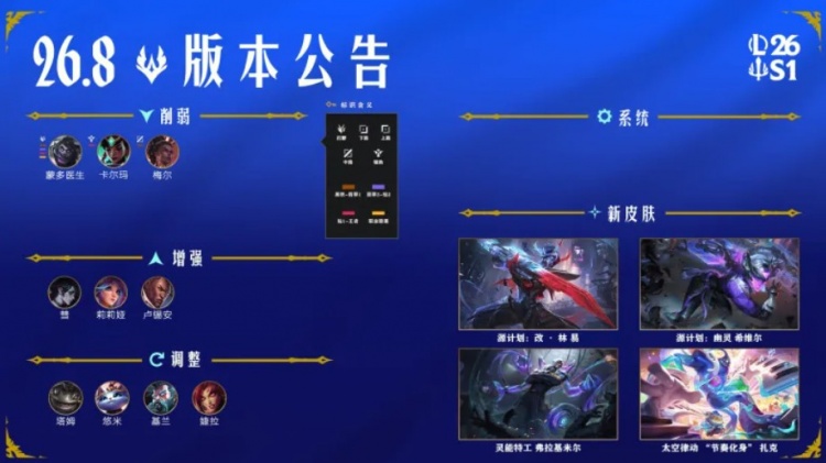 直播吧4月16日讯 英雄联盟官方发布公告,16日凌晨1点开始全区停机维护,发布26.8版本,更新内容让如下: