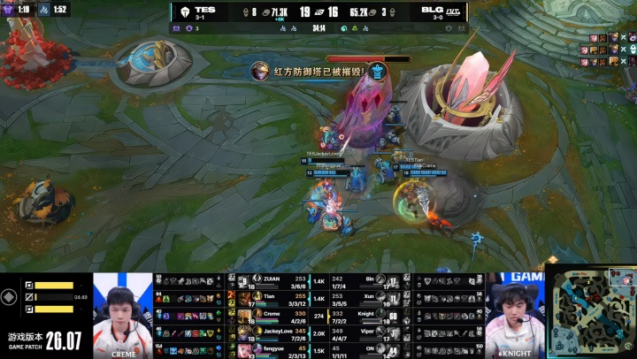 直播吧04月16日讯 TES新上单ZUIAN使用薇恩在对线期两度单杀Bin纳尔,最终比赛结束Bin纳尔战绩为1-7-4,为本赛段最差战绩。