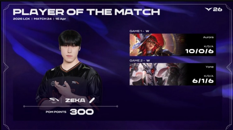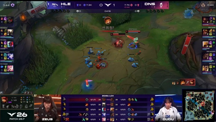 直播吧4月16日讯 2026LCK常规赛继续进行,今日第二场比赛由HLE对阵DNS!
