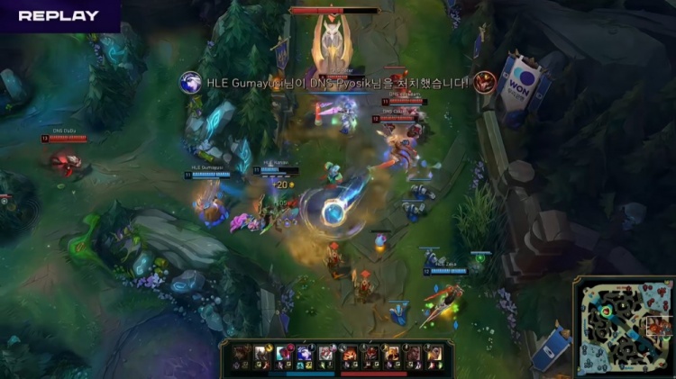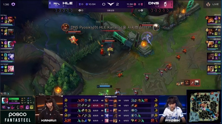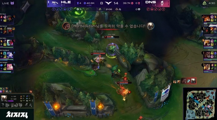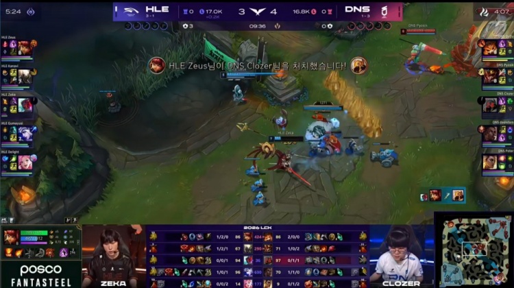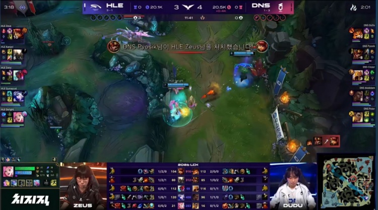 中期宙斯连续被杀,双方围绕小龙与大龙展开拉扯,Pyosik抢大龙难逆转局势,DNS在随后的正面团战中处理略显急躁,被HLE抓住机会连续打出人数优势,经济开始向HLE倾斜。