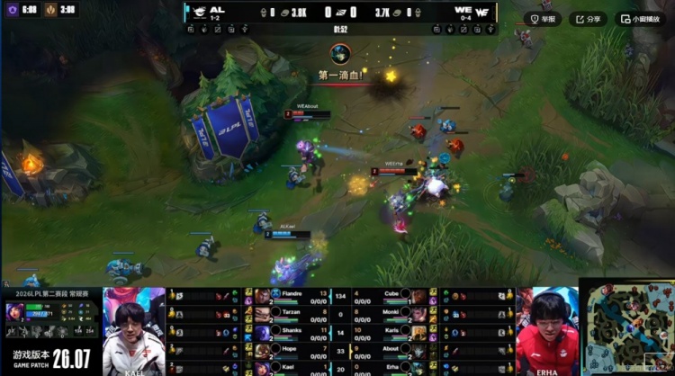 直播吧4月16日讯 2026年LPL第二赛段继续进行中,今天的首场比赛是AL对阵WE!