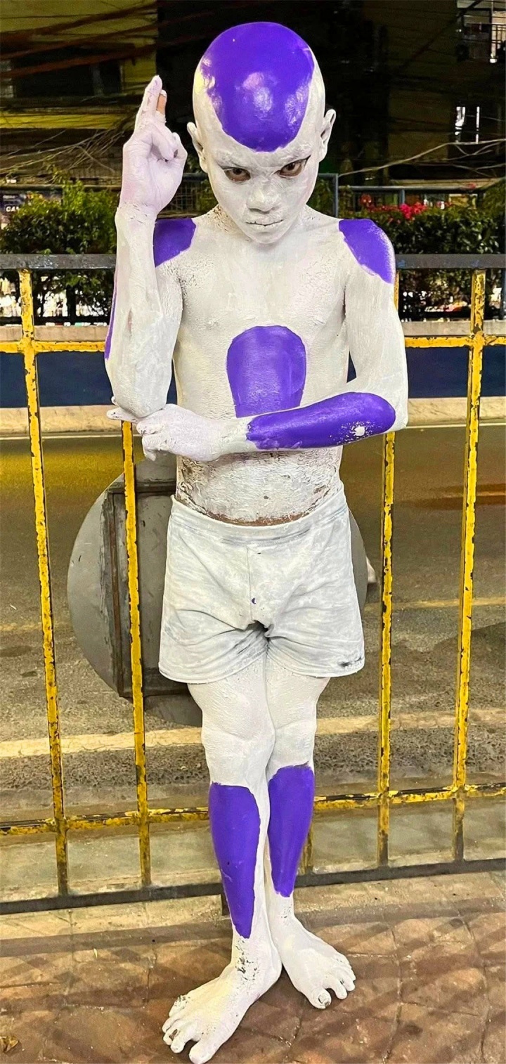 妈妈用乳胶漆帮小孩Cos《龙珠》弗利萨结果洗不掉!网友:永久皮肤