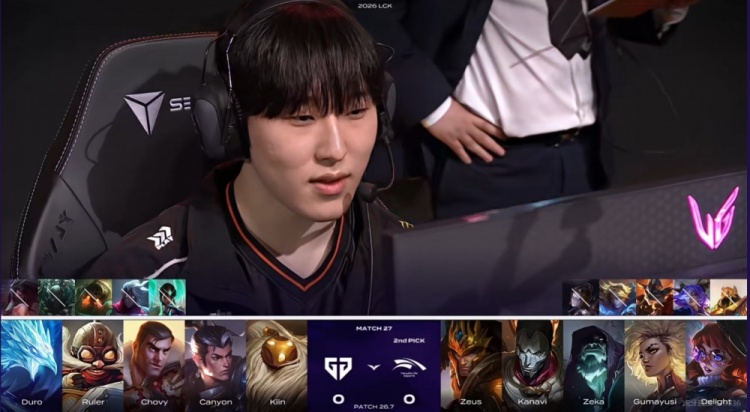 GEN:上单Kiin,打野Canyon,中路Chovy,下路Ruler,辅助Duro