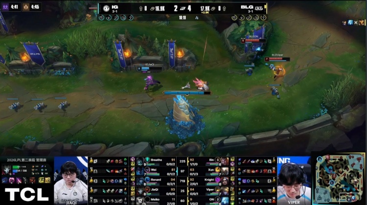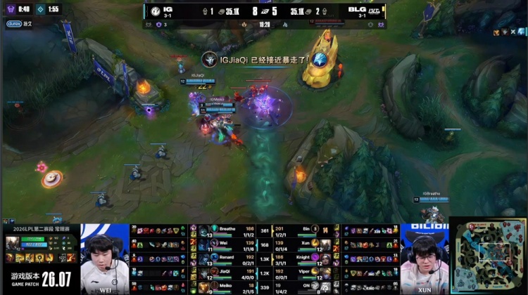 直播吧4月18日讯 2026LPL第二赛段常规赛组内赛继续进行,今日首场比赛由BLG对阵iG!