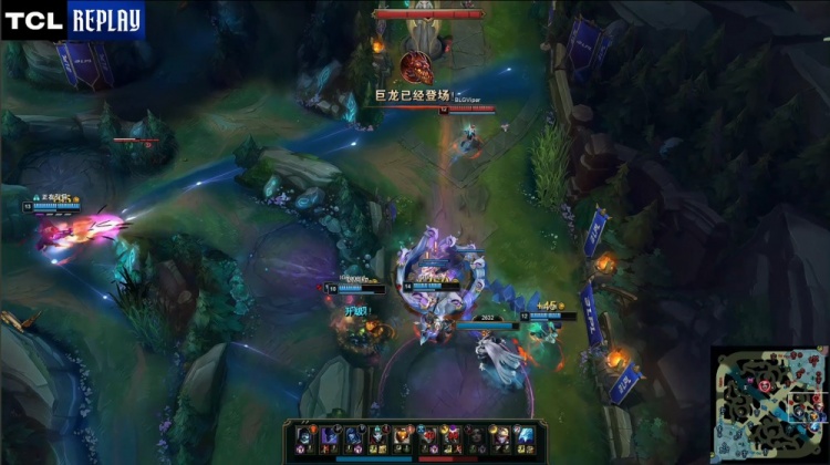 【6:18】上河道团战,Renard丽桑卓大招扣自己随后E走被knight妖姬击杀送出一血,Wei梦魇换掉Xun潘森,Meiko巴德双杀,双方打出2换2。