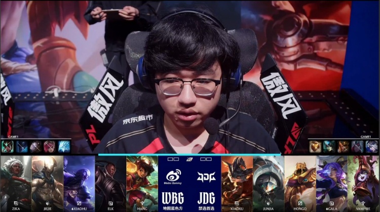 第一局前期WBG依靠中野联动抓爆JDG三路打开局面,中期中路团战,hang米利欧未能解掉Junjia蝎子大招,致使Elk卢锡安被Junjia拉回击杀,没躲过就Elk卢锡安圣枪洗礼射爆GALA,Zika拿到生涯1000击杀,WBG打出1换4吃掉大龙,经济领先8k。