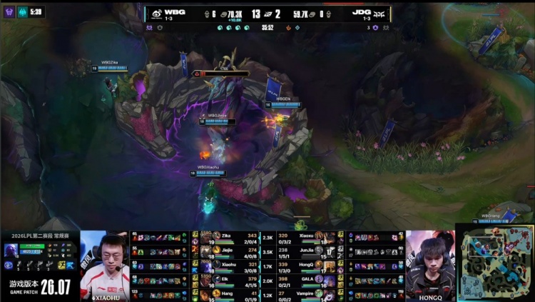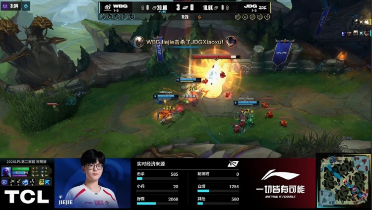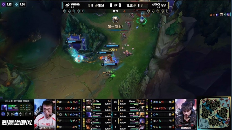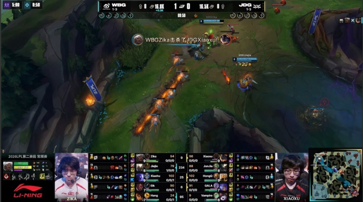 直播吧4月18日讯 2026LPL第二赛段常规赛组内赛,今日第二场比赛由JDG对阵WBG!