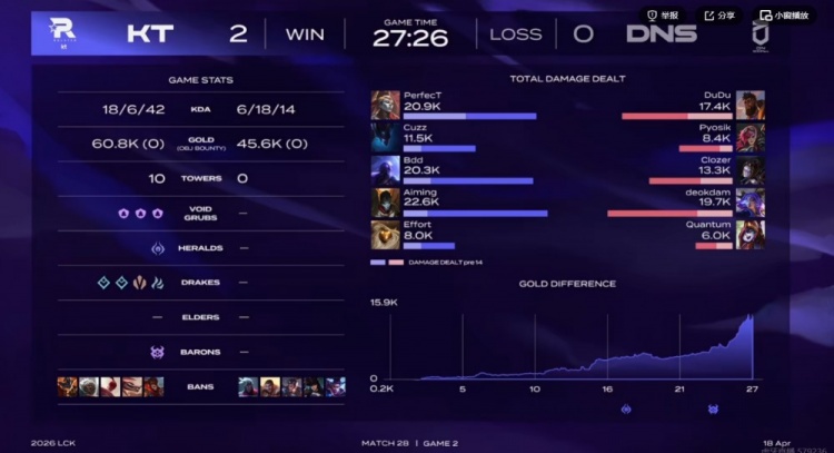 第一局:🎮DNS避战策略全场挨打 PerfecT鳄鱼龙魂团发威 KT轻松赢下首局