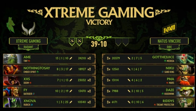 天辉方XG:Ame小小、NothingToSay火猫、Xxs末日使者、fy蝙蝠、xNova拉比克