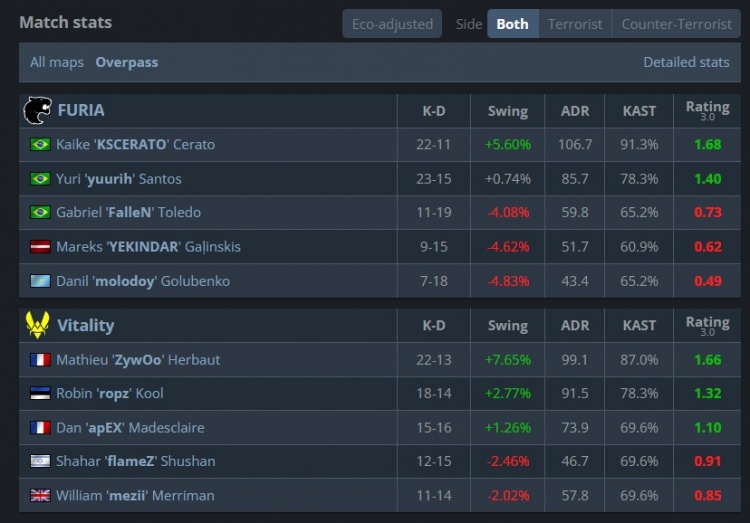 FURIA:molodoy、yuurih、FalleN、KSCERATO、YEKINDAR
