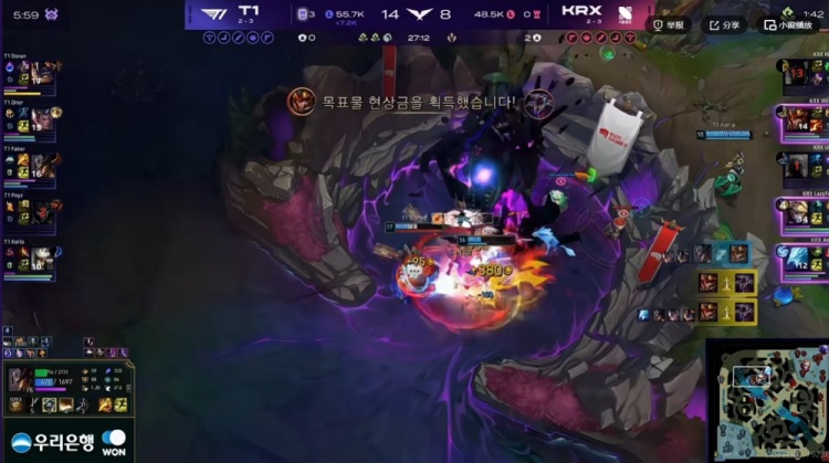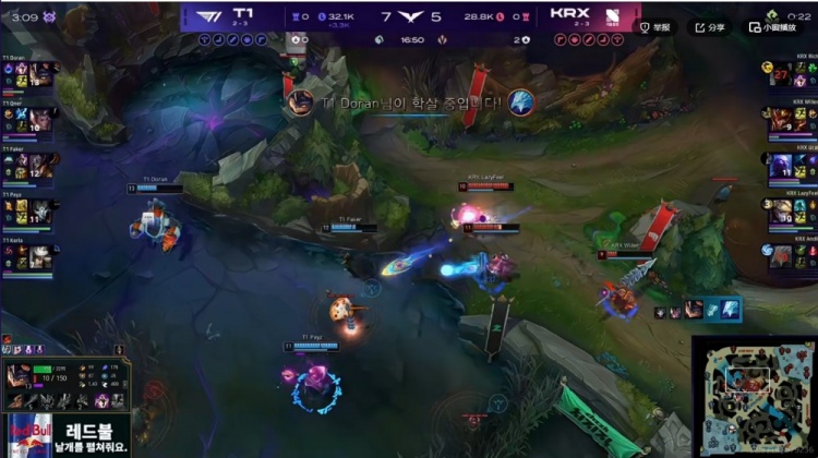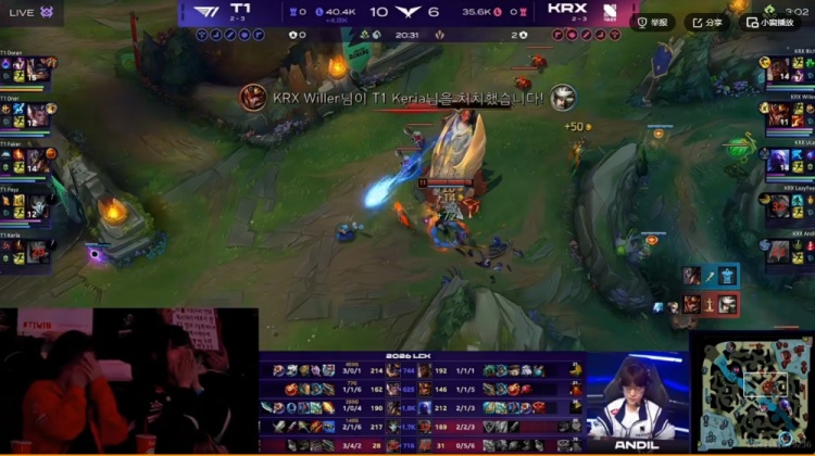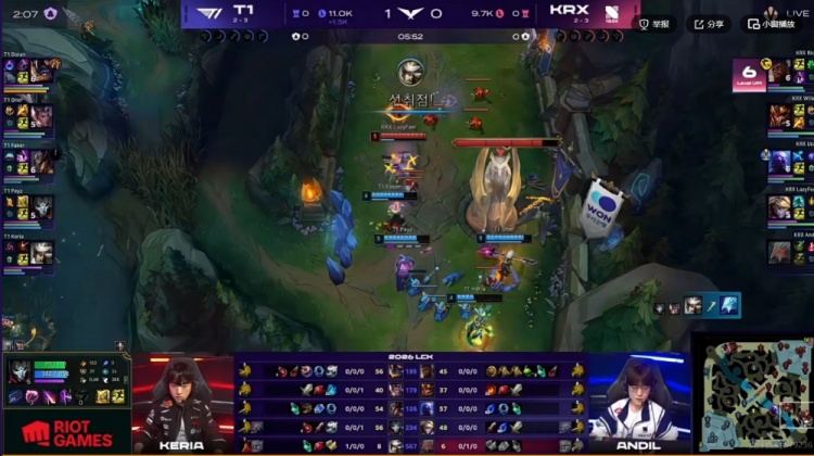 【8:58】KRX拿下双虫,T1则是三人入侵野区强杀Andil冰鸟!