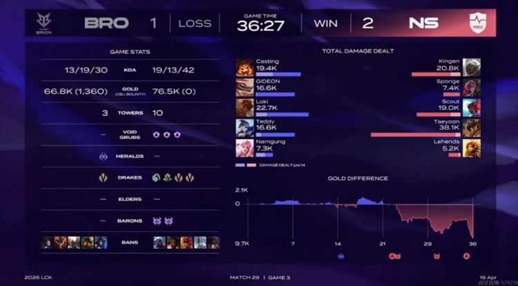 直播吧4月19日讯 LCK来到本周最后一个比赛日,首场的比赛是NS对阵BRO!