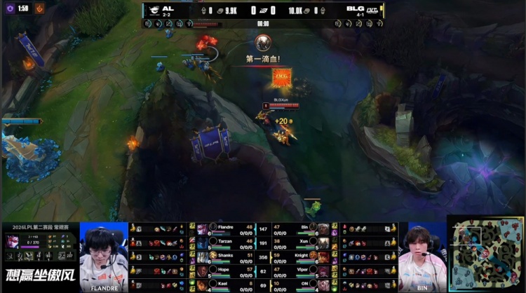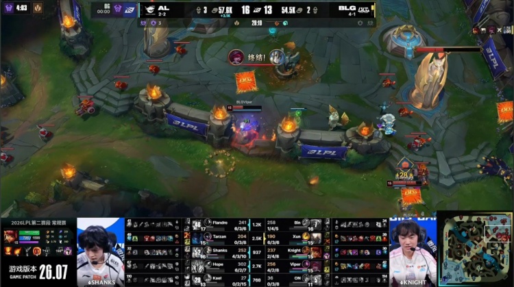 直播吧4月19日讯 2026LPL第二赛段常规赛组内赛继续进行,今日焦点之战BLG横扫AL!